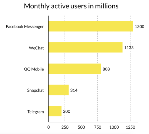 Statistics point out that social messaging had become the new standard for communication. WhatsApp and Facebook Messenger are the most used Messenger apps with over 3.3 billion monthly active users worldwide, followed by WeChat with 1.2 billion monthly users. The reach through these platforms is enormous!