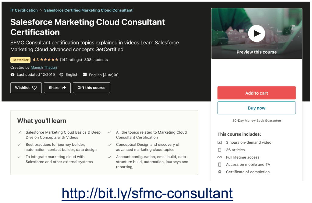 There’s more if you are looking to build your career into Salesforce Marketing Cloud. Become an Email Specialist or a Consultant, using the course I’ve launched for both.